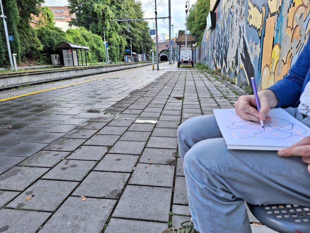 Création d’une œuvre dans la rue devant le musée Art et Marges en collaboration avec Benjamin Hendlisz, été 2022